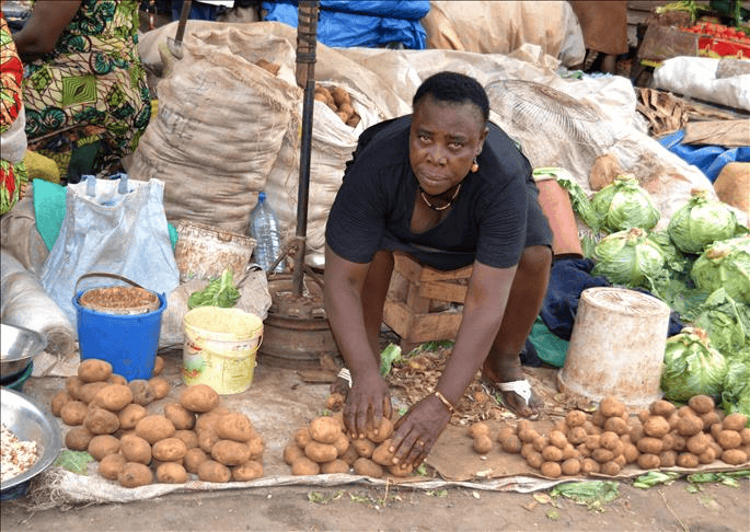 Elle doit acheter ses sacs de tomates, choux et piments avant le lever du soleil, sous la lumière blafarde des lampadaires ou de sa lampe torche. La négociation y est rude. « Si tu arrives après 5 h, les prix grimpent ou les meilleurs produits sont déjà partis », explique-t-elle. Son expérience lui permet aujourd’hui de reconnaître un bon produit au simple toucher et de négocier au plus juste pour préserver sa marge. C’est l’étape où son capital est le plus vulnérable, face aux erreurs de jugement ou aux intermédiaires voraces. Vers 6 h, Maman Marie rejoint son emplacement habituel à Etoudi. Elle décharge, trie et arrange soigneusement sa marchandise sur des nattes posées à même le sol. Son corps est habitué au poids des charges et aux postures inconfortables qui façonnent ces métiers de l’ombre. La longue journée de vente commence. Assise derrière son étal, elle calcule mentalement les prix, accorde des crédits aux clientes fidèles et surveille sans relâche ses légumes contre le vol et la chaleur.